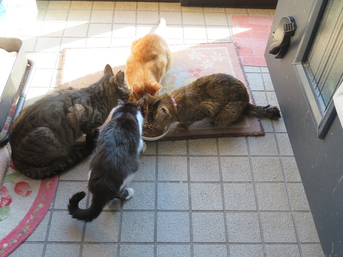 今日は21匹ニャンずのお家 お手伝いの日ニャン  にゃあ♡キジ白ちゃんにゃん すっごく久々にゃん ご飯少し残しているにゃね 猫パウチと ネコちゃんの牛乳は完食! 寒いからこたつの中からのぞいている子も♡