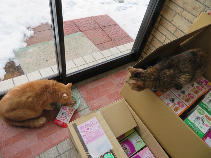 ![]() 2021/1/16 おれは茶トラらいあん君♡ 県南倉庫の「猫スタッフ」さ 玄関寒いにゃね・・; おれお手伝いがんばるにゃん!(^^)! 今日は キジ白姫ちゃん♡ 茶白茶太郎くん♡ 長毛キジトラちょも君♡ 里親さんが、お家の脱走対策とお部屋の準備整えてお迎えさ! みんな・・新しい家族が出来たにゃん(≧▽≦) ![]() (´∀`*)ウフフ おれ ご馳走の方がいいにゃん♡ ![]() 独り占めにゃん! 今日は猫パウチがいっぱいにゃん(≧▽≦)ヾ(*´∀`*)ノ おいしいにゃあ♡ 白茶いちご君は、とってもシャイ! 風防室には入ってこないにゃ・・ 後でご馳走いただけるにゃんよ ![]() むぎわらミミちゃん♡ 風防室寒いけど・・ご馳走に気が付いたにゃん 美味しいにゃね°˖✧◝(⁰▿⁰)◜✧˖° 沢山の猫パウチ♡ すっげー しあわせにゃあ°˖✧◝(⁰▿⁰)◜✧˖° 嬉しいにゃん ![]() ここは近所の河川敷さ 橋の下は、冬季間の雪捨て場 大寒波・・大雪にゃよお(@_@;) 夜遅くまで・・トラックがいっぱい雪捨てに来るにゃん 土色になっているけど・・これは雪にゃん! ちゃんと積んで慣らしているにゃね ものすごい量の雪にゃん(@_@;) これから春までこの作業が続くにゃん ![]() ゲージの中で隠れているキジトラちゃん♡ 昨夜避妊手術済ませてお泊りにゃよ! 麻酔すっかり醒めたのかにゃあ・・ ![]() 暗いけど 俺たちは夜目がきくにゃん<(`^´)> 左耳・・さくら耳にされちゃったにゃね・・; 明日お迎えに来てくれるにゃん 今日は猫パウチのご馳走召し上がれ ![]() にゃにゃ(@_@;) 近所のパン屋さんのパンにゃん°˖✧◝(⁰▿⁰)◜✧˖° 黒猫ももた君と黒猫ヤマト君 パンの包み紙に夢中にゃよ ![]() あ おちた・・ ![]() ももた君はパンが大好きさ! 塩分糖分強いから・・・俺たちにパンは戴けないにゃよ; キジトラぴゅーま君は、お外でここのパンをおねだりして生きてきたにゃ! ・・・・糖尿病になって・・インスリン注射して、毎日療法食、食事制限中にゃよ; 食べたいけど‥お腹いっぱい食べられないにゃよ; オス猫は塩分・・特にだめにゃよ ちっこ詰まっちゃって、真っ赤なちっこになるんだって・・; 包み紙・・で我慢にゃん 明日も、2匹に里親さんがお迎えに来てくれるにゃん 里親さんは、おれたちの家族(飼い主さん)になるにゃん 天寿を看取るまで、ご飯を食べさせて病院に通って 大事にしてくれるって お約束してくれたにゃよ(#^.^#) 譲渡会で、「今時の猫の飼い方」をしっかりお勉強! 健康や食餌、運動・・・しっかりお勉強したにゃん 俺たちをお迎えするために 猫ゲージ ネコキャリー ネコベッド おもちゃ 食器 猫トイレ一式 そしてそして・・ 俺たちニャンこ星の野望を阻止する 「脱走防止対策」すませてお迎えに来てくれるにゃよ 俺たち・・野生の生き物じゃないにゃん; 岩手の厳しい冬を お外で生き抜ける子は・・・本当に少ないにゃん; お家の中はあったかいにゃね♡ ご飯もお腹いっぱいいただけるにゃん でも・・・ 保護シェルターも県南倉庫も保護できる上限まで・・保護しているにゃ 満員状態にゃん・・ 1匹里親さんが決まったら、保護の順番をまっている仔を助けて貰えるにゃよ! 保護して貰ったら・・ 健康診断して、混合ワクチンして、寄生虫の駆除をして 大人の猫は不妊(避妊・去勢)手術も済ませるにゃ! 長生きできるにゃん♡ 助けてくれて有難うニャン
