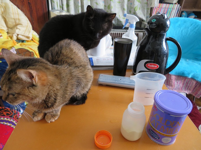 ![]() 2021/1/20 僕はゆきまろ君♡茶トラまさむね君と猫スタッフにゃん!(^^)! 食いしん坊のまさむね君・・ 大きくて重そうな袋に突撃にゃん あにょね・・これは・・ご飯じゃないよ・・; いい香りがしにゃいよ! ![]() ね♡ この箱もいい匂いしにゃにゃん ![]() すごいにゃあ・・24時間持つにゃね(@_@;) 保護シェルターのみんにゃ♡ 一日中ぽかぽかあったかいにゃん(≧▽≦) もう明け方の寒さに震えることはないにゃん 大喜びするにゃね♡ まめたん・・・スタッフさんが帰宅する時に 薪ストーブに入れてくれるにゃよ! 朝方までふんわりとあったかいにゃん°˖✧◝(⁰▿⁰)◜✧˖° うれしいにゃあ ![]() まさむね君 そこにゃ! それがご飯にゃよ! 美味しい香りするにゃよ♡ ![]() しっかり覚えるにゃん 万一の時には・・・袋かじって穴開けたら食べられるにゃんよ! ![]() 朝のお掃除済んだにゃん 45リットルのゴミ袋1日に3袋! 今日は汚れた毛布もお片付けするにゃん 明日はゴミの日にゃもん♡ イカ耳にゃーにゃちゃん♡ お仕事お手伝いしたらごちそう頂けるって学んだにゃん<(`^´)> 一時預かりさんのソバにきてしっかりご馳走のチャンス待っているにゃん ![]() 昨日いただいたシーバ♡ 嬉しいにゃあ しばらく・・戴いていにゃいよ・・・ 沢山あるから、今日はみんにゃでごちそうにゃん(≧▽≦) ![]() 黒猫ももたお兄ちゃんにゃ 美味しいにゃね(#^.^#) ![]() ミミお姉ちゃんも♡ シーバって最高にゃあヾ(*´∀`*)ノ ![]() 黒猫やまとお兄ちゃんにゃ 夢中にゃん ![]() ミミお姉ちゃん・・・食べたらなくて・・・ 2階のみんにゃのシーバ・・・食べちゃったにゃ ![]() サバトラエリ―お姉ちゃん・・・ シーバ 残ってにゃいよ・・; ![]() 次はホットミルクにゃ♡ 開封すみのコナミルク・・ 1週間前にあけたばかりにゃよ! 今は・・赤ちゃん仔猫はいにゃいよ いったん開封したものは早めに戴かにゃいと°˖✧◝(⁰▿⁰)◜✧˖° お湯で少し薄めに溶かしてもらって戴くにゃん(≧▽≦) すっごく すっごく栄養があっておいしいにゃ ![]() 粉ミルクは哺乳瓶で溶かすのが一番にゃん 100cc♡ ぬるま湯でしっかりシェイクしたら出来上がりニャン ![]() ミルクとお湯・・・この位かにゃ?? ![]() 完成にゃん(≧▽≦)ヾ(*´∀`*)ノ ![]() 最初はクラシックタビーほくと君♡ お部屋フリーにしたら・・・遊んでおめめボロボロになっちゃったニャン; 目薬で治療中にゃん! ゲージに戻されちゃったよ! 生まれて初めての「猫用粉ミルク」! 美味しいにゃね♡ ![]() キジトラれおん君も美味しそうニャン 何度も何度も・・お腹いっぱい戴いているにゃよ ![]() まだいっぱい残っているにゃね(#^.^#) ![]() 最後はぬるま湯にゃん やっぱりご馳走の後の白湯って最高にゃん♡ ![]() ああっ お仕事しちゃったにゃね! なにを散らかしちゃったのかにゃあ ![]() ティッシュは・・・ひっくり返しただけにゃん ![]() キジ白みーなちゃんのお仕事・・・にゃね キジ白アリスお姉ちゃんに、教育的指導! 猫パンチされているにゃん ![]() みーなちゃん ニャンコ星の秘密工作員(猫)まだまだ手ぬるいにゃん 散らかし攻撃は徹底的にするにゃよ! ティッシュも忘れずにね! ニャンコ星の秘密工作員(猫)みにゃらい(見習い)は お兄ちゃん猫やお姉ちゃん猫達から、テクニックを学ぶにゃ! もうすぐいっちょまえになるにゃん